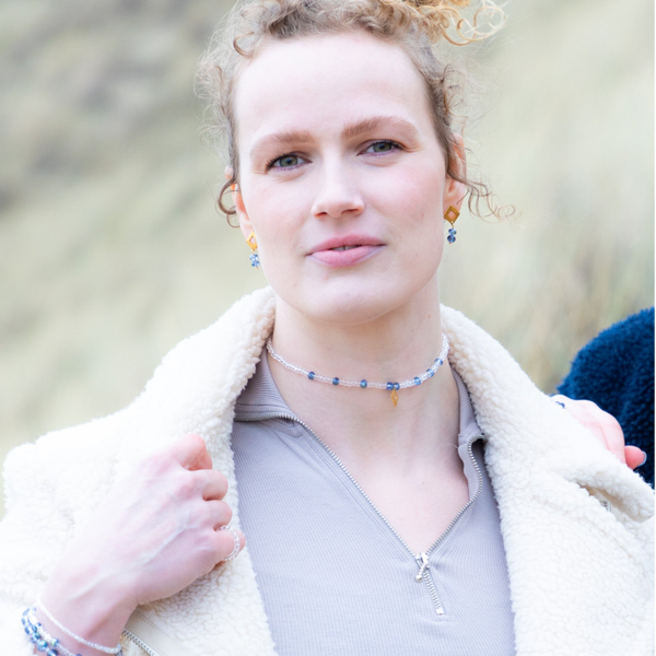 De choker is afgewerkt met een goudkleurig RVS. Al onze producten worden met zorg en liefde samengesteld door een van ons. Doordat onze sieraden handgemaakt zijn, kan het echter voorkomen dat het product dat je ontvangt niet exact overeenkomt met het afgebeelde product.