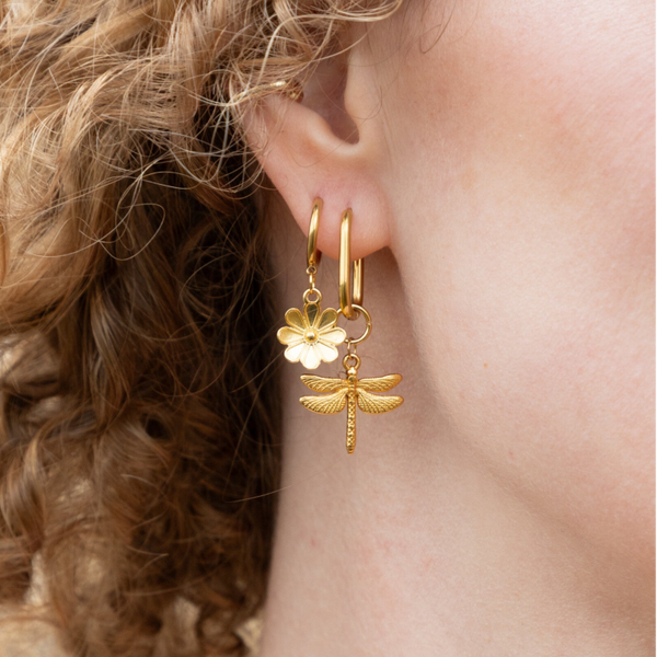 De Fluttering oorbellen zijn de perfecte statement piece om al jouw zomerlooks onvergetelijk te maken! De gouden libelle is opvallend, stoer en fris. Je voelt hem bijna vliegen op een heerlijk zomers briesje. Perfect om jouw eigen stijl te laten stralen!